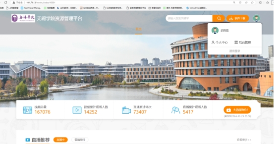 无锡学院视频资源管理平台内网地址为:10.1.71.13