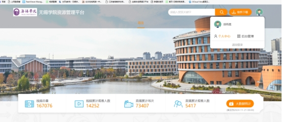 前台具有观看权限。点击右上角人像,可以选择进入个人中心。个人中心里面只有自己上课的视频,可以对视频进行编辑,修改,删除等操作。删除后不可以恢复找回。