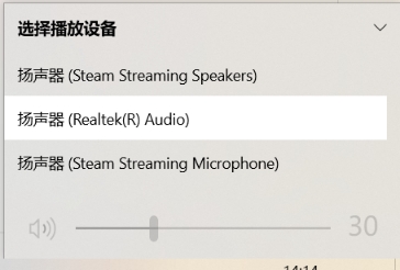 6.如果笔记本连接音频线发现无声音播出,请检查音频播放设备是否错误。如下图所示: