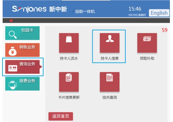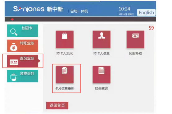 选择查询业务-卡片信息更新,点击确认更新完成: